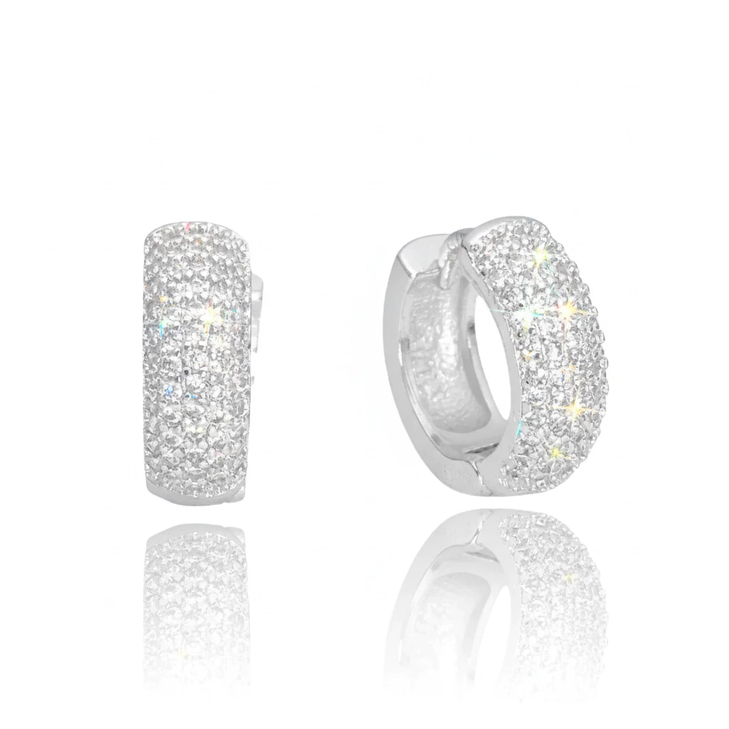 Brinco Argola Cravejada em Zircônia 52 Pedras (Banho Prata 925)