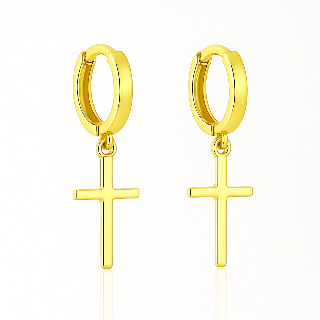 Par de Brinco Com Crucifixo Banhado A Ouro 18k